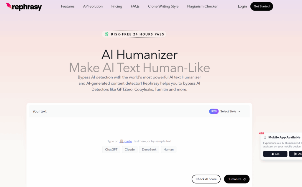 Rephrasy is an online AI tool that promises to turn robotic AI text into natural, human-like writing. It claims to make your writing sound smooth, emotional, and real.